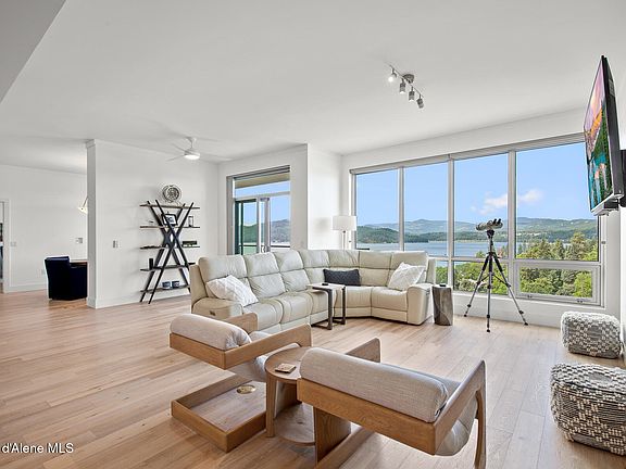 Luxury Living with Breathtaking Lake Views in the Heart of Downtown - this beautifully designed 3-bedroom, 3-bath residence blends upscale comfort with modern elegance. Step inside to a light-filled open floor plan where expansive windows frame postcard-perfect views. The gourmet kitchen features top-of-the-line appliances, a spacious quartz island with breakfast bar seating, a wet bar and flows seamlessly into the dining and living areas-perfect for entertaining. Resort-style amenities await on the Club Level, including a state-of-the-art fitness center, panoramic rooftop views, an open-air patio with hot tub and fire tables, and a spacious club room with full kitchen for entertaining. Plus, a 4th-floor dog run adds extra ease for pet owners. Live where luxury meets lifestyle-just steps form Coeur d'Alene's vibrant downtown shops, restaurants, and lakefront. For a fully turn key experience the condo can be sold fully furnished.
