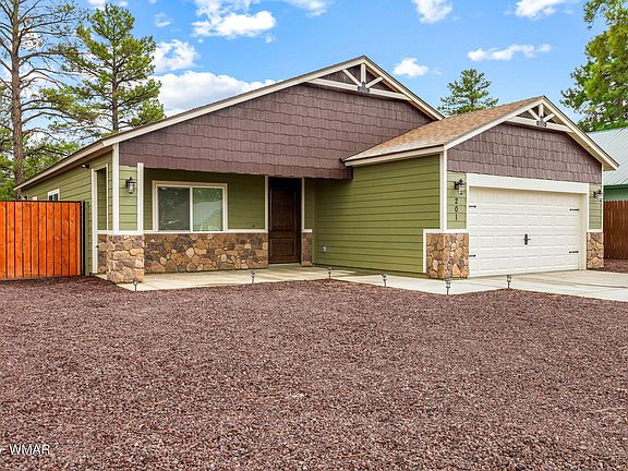 Beautifully built 3 bed, 2 bath home tucked away in Fox Canyon among the tall pines of Show Low! This thoughtfully designed home features an open floor plan with luxury vinyl plank flooring, stunning alder cabinets, granite countertops, stainless steel appliances, and a spacious island perfect for entertaining. The split layout offers a private primary suite with walk-in closet and elegant bath, while two guest bedrooms provide comfort for family or visitors. Step outside to a fully fenced backyard with mature trees and a covered patio—ideal for relaxing or hosting under the pines. With an oversized 2-car garage, RV gate, and low-maintenance landscaping, this home blends mountain charm with modern convenience, just minutes from lakes, trails, and downtown Show Low.