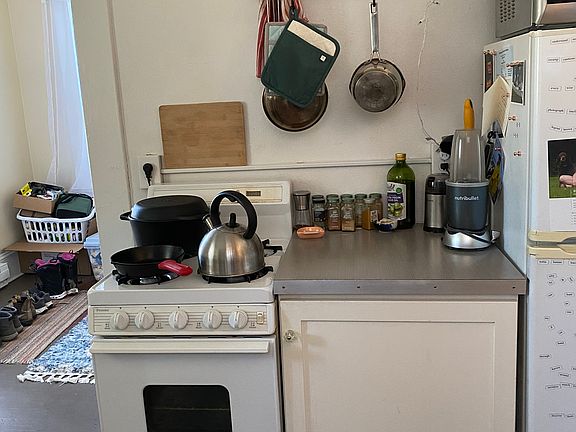 Top floor apartmentBright kitchenStandard size appliancesLinoleum flooringEntrance via exterior stairwayBaseboard heat