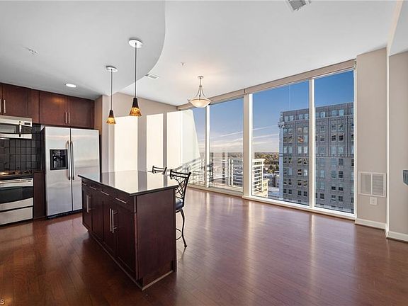 Wake up to breathtaking skyline views from your 14th-floor sanctuary at Center Pointe—where every sunrise and sunset paints Greensboro in a new light. Perched high above the city, this peaceful retreat offers a quieter escape from the bustle below, with sweeping views and serene comfort. This stunning 2-bedroom, 2-bath condo features floor-to-ceiling windows with remote-controlled blinds, a beautifully renovated primary bath (2021) with double Corian vanities, walk-in shower, and bidet toilet. Each bedroom offers an ensuite bath and spacious walk-in closet, with custom cabinetry adding thoughtful storage. Step outside and you’re moments from Center City Park, the Tanger Center, and the best of downtown life. Enjoy resort-style amenities including 24/7 concierge and security, a state-of-the-art fitness center, deeded storage unit, and two covered parking spaces connected by a skybridge. Experience modern comfort, vibrant energy, and a view that never gets old.