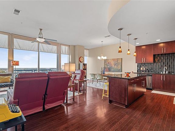 Granite countersTwo private balconiesPanoramic city viewsStainless-steel appliancesLarge second bedroomOpen light-filled layoutSleek modern kitchen