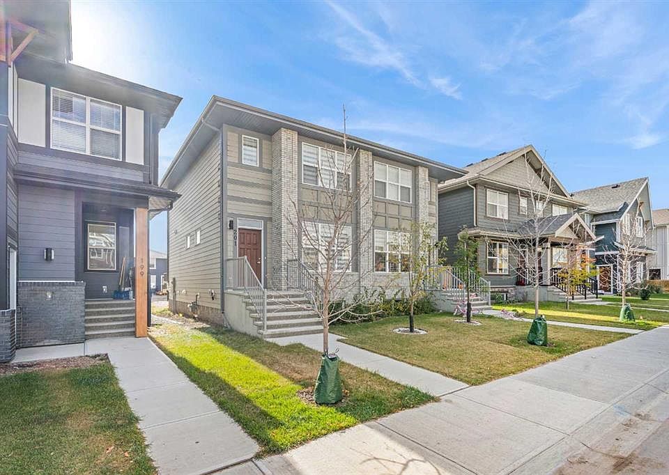 Welcome to your dream home in the highly sought-after lake community of Mahogany! This beautifully maintained, like-new home offers modern design, premium finishes, and an unbeatable location — all ready for quick possession. From the charming brick-accented exterior to the bright and airy interior, you’ll immediately feel at home. The main level features 9-ft ceilings, abundant natural light, and gleaming LVP flooring throughout. The open-concept layout includes a spacious living area, a dedicated dining space, and a stunning kitchen with a large island and breakfast bar. Enjoy the upgraded kitchen with pot lights, quartz countertops, modern stainless steel appliances, sleek upgraded railings, and a pantry for extra storage. Upstairs, you’ll find three generous bedrooms, two full bathrooms, and a convenient laundry room with upgraded washer and dryer. The primary suite is your private retreat — complete with a walk-in closet and a stylish ensuite featuring a fully tiled standing shower. The unfinished basement offers endless possibilities for future development and includes rough-in plumbing for a bathroom. Step outside to enjoy your spacious deck, perfect for summer barbecues and outdoor gatherings, overlooking the south-facing backyard with space to park two vehicles or build a garage in the future. Located in one of Calgary’s most desirable communities, Mahogany residents enjoy 63 acres of lake and beach access, playgrounds, picnic areas, sports courts, splash park, fitness zones, skating rink, and year-round activities for all ages. You’ll love being just minutes from shopping, restaurants, coffee shops, and the South Health Campus. Don’t miss your opportunity to own this like-new home in an award-winning lake community — book your private showing today!