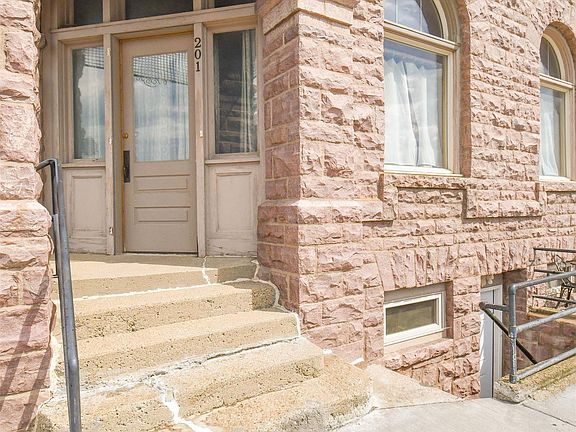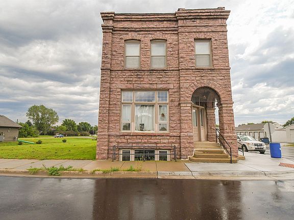 The original Farmers State Bank has been converted to a multi-use building that includes two apartments and a retail space. There have been many updates to the stone and rock of the building including a new rubber roof in 2020 and walls tuckpointed in 2022. There is also a new double garage; one stall with heat and A/C that was built in 2019. The upper unit boasts a 13 foot ceiling, original wood floors, and updated windows that allow for plenty of sunshine and awesome views. The updated kitchen has an abundance of cabinets including appliances. The utility room includes a washer and dryer and updated bathroom. The middle unit is set up as a retail space with kitchenette and bathroom. Access to the retail space is using the original welcoming front entrance. The lower unit has a private entrance and is a one bedroom with a double closet. The lower unit includes updated flooring, kitchen appliances as well as a washer and dryer. There is also a small private patio area. The purchase also includes the lot on the north side.