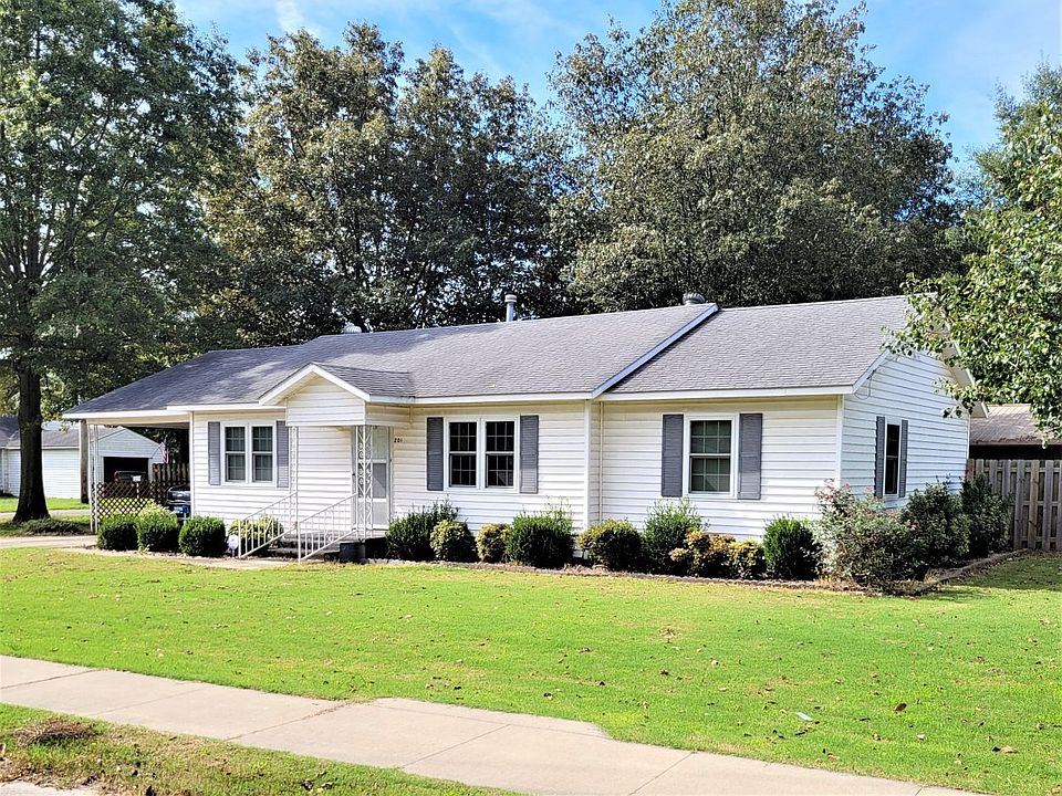 SALE PENDING!! Very cute home on corner lot with recent updates. 2-Bedrooms and 1 ½ bath home has new vinyl windows, newer fence, new flooring, and some fresh paint. Some new kitchen appliances in the large kitchen which opens to the dining room and main living area. Separate utility room off kitchen. Master suite has half bath and walk-in closet. Large shop with electric, wood stove, garage door with opener, half bath, and lean-too. Would make a great first home! Within walking distance to school and local park. A must see!! Lot size 125'x150' MLS183