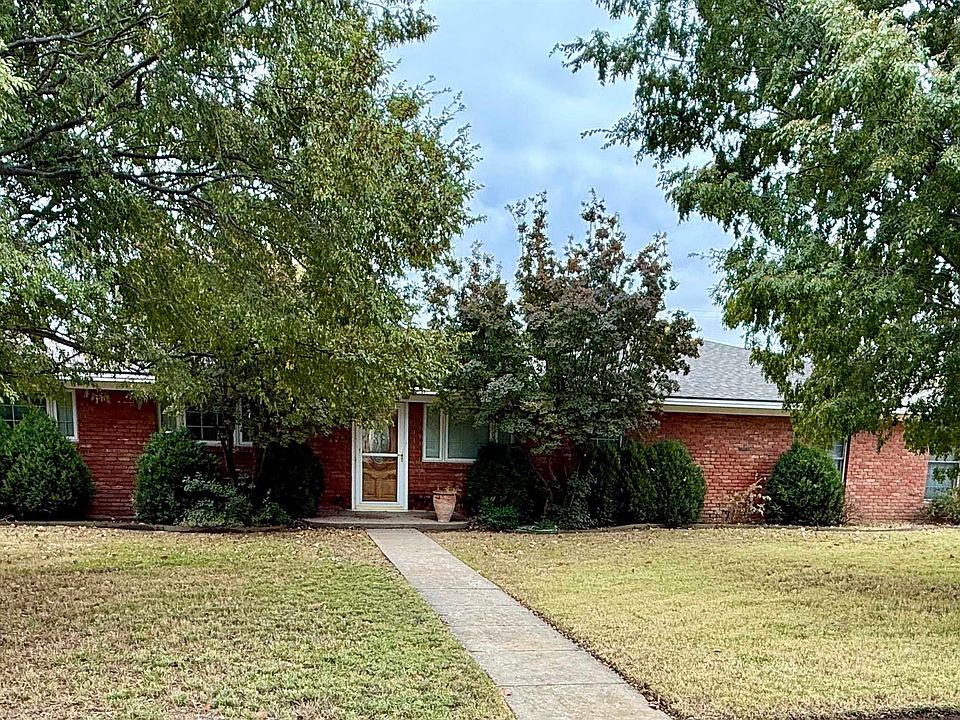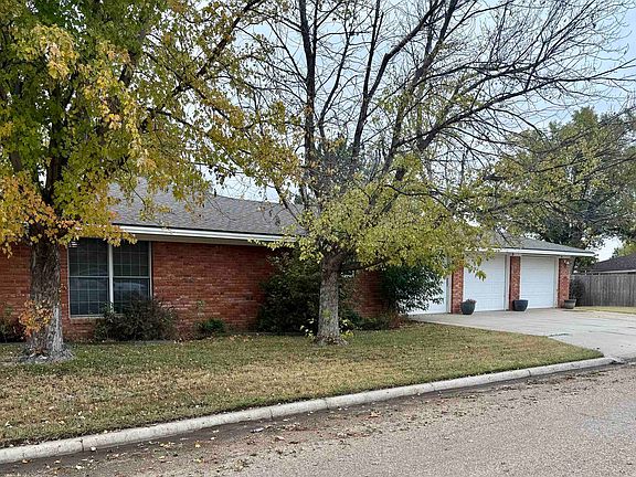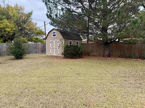 Beautiful fully remodeled 4 bedroom, 2.5 bath home located just south of the golf course on two corner lots. The bathrooms and kitchen have granite counter tops and tile flooring with luxurious dark mahogany hand scraped floors throughout the rest of the home. The spacious primary bedroom has a double walk in closet then wraps to an en suite primary bath with jacuzzi tub, walk in shower, large double vanity area with built in storage space galore. The utility room includes a sink and office space with a built in desk, counter and top to bottom storage cabinets. The attached 3 car garage includes built in shelving and work bench which leads to a covered patio and double fenced lot with a nice sized garden shed. The home includes two HVAC systems, in home water treatment system, whole house humidifier, newer windows with blind inserts and an inground sprinkler system to water the well kept lawn. This is A Rare GEM in Hooker, OK.
