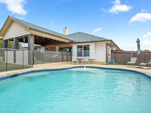 A rare opportunity in Liberty Hill! This spacious single-story home sits on a full acre corner lot, offering the perfect blend of country living with easy access to town, schools, shopping, and major roads. With 2,631 sq ft, the home includes 3 bedrooms, an additional bedroom/bonus room provides even more flexibility, whether as a 4th bedroom, a flex space or an office, 2.5 bathrooms, a versatile formal dining room, and a breakfast nook. The open-concept kitchen flows seamlessly into the living area and features a large center island with granite countertops — ideal for gatherings and everyday living. The generous primary suite includes a comfortable sitting area, perfect for reading or working from home, along with a spacious bathroom featuring dual sinks, a soaking tub, a separate shower, and a large walk-in closet. Step outside to your private retreat — a sparkling pool with full security fencing and an expansive extended covered patio designed for year-round enjoyment. The property also offers an epoxy coated 3-car garage plus additional parking space outside. Located within Liberty Hill ISD, this home combines a peaceful neighborhood setting with the convenience of nearby schools, amenities, and quick access to main roads. Move-in ready and thoughtfully maintained inside and out. Recent updates include: wood flooring (2021), epoxy garage flooring (2021), full interior and exterior paint (2021), new roof and gutters (2022), storm door to back patio (2023), pool fence (2024), tree and bush removal/trimming (2024), pool pump (2025), dishwasher (2023) and microwave (2024), kitchen light fixtures (2025), new faucets throughout the home (2025), indoor ceiling fans in the office and living room (2025), and an exterior ceiling fan (2025). In addition, negotiable items: the zero-turn lawn mower, W/D, kitchen fridge and patio furniture may also convey with the property, offering even more convenience for the new owners.