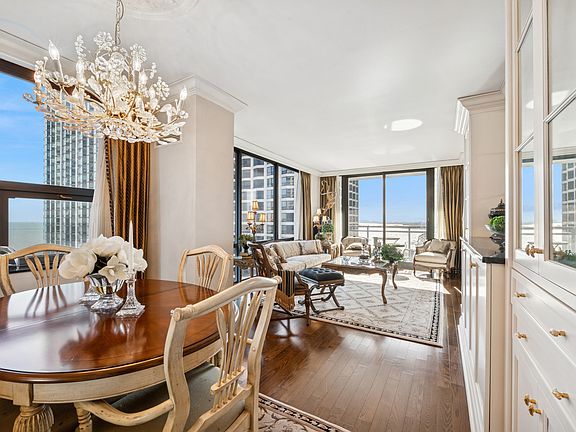 Experience luxury living at its finest in this elegant 2-bedroom, 2-bath residence on the 17th floor of The Lancaster, one of Chicago's premier buildings in the coveted New East Side. Perfectly positioned to capture sweeping views of Lake Michigan and Monroe Harbor, this stunning home combines sophistication, comfort, and convenience in a beautifully designed space. Floor-to-ceiling windows fill the unit with natural light, highlighting the rich hardwood floors and exotic countertops that flow throughout. The open-concept living and dining area provides the perfect setting for entertaining or relaxing, while the private balcony offers a tranquil retreat overlooking the lake. The chef's kitchen features luxury stainless steel appliances, elegant finishes, and ample counter space to satisfy any culinary enthusiast. The spacious primary suite offers a peaceful escape with a walk-in closet and spa-inspired bath, while the second bedroom is equally inviting-ideal for guests or a home office. A bonus den or family room provides additional flexibility for your lifestyle needs. The residence also includes in-unit upright laundry, and can be sold fully furnished, allowing for a truly turnkey, move-in-ready experience. Offered as-is but in excellent condition, this home showcases refined style and attention to detail throughout. Deeded parking space #55 is included in the sale. The Lancaster offers residents a host of world-class amenities, making every day feel like a five-star experience. The dramatic 30th-floor rooftop deck provides panoramic views of the city skyline and lakefront, perfect for entertaining, social gatherings, or quiet evenings under the stars. A state-of-the-art fitness center rivals Chicago's top private clubs, while the resident lounge-complete with a full kitchen, fireplace, and workspace-offers the perfect environment to relax, work, or connect. With 24-hour door staff, on-site management, and a pet-friendly environment, The Lancaster delivers luxury living with peace of mind. Set in the heart of Chicago's New East Side, this exceptional location blends urban energy with tranquil green space. Just steps away, you'll find Lakeshore East Park, Maggie Daley Park, Millennium Park, and the Lakefront Trail, as well as the vibrant Chicago Riverwalk and Monroe Harbor. Enjoy quick access to Michigan Avenue's premier shopping and dining, cultural landmarks, and the best of downtown Chicago living-all within easy reach of public transportation and major expressways. This is a rare opportunity to own a beautifully appointed home in one of the city's most exclusive residential buildings. Whether you're seeking an elegant full-time residence or a fully furnished in-town retreat, this Lancaster condo offers an unmatched combination of luxury, location, and lifestyle-just move in and start enjoying the best of Chicago's lakefront living.