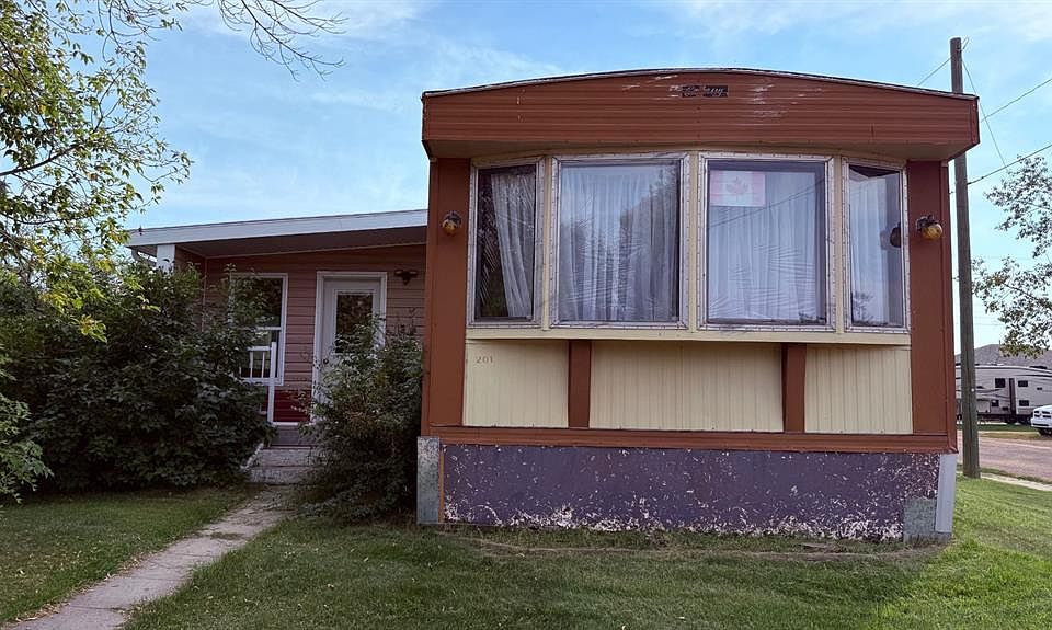 This 2 bedroom and 1bathroom mobile home offers a great layout with an additional entrance leading into a versatile mud/flex room. This space includes it's own furnace and basement area, giving you extra storage and the opportunity to develop it to suit your needs. Set on one of the first home sites in Youngstown, the property has been expanded with an addition and offers a peaceful setting to call home. Step outside to enjoy the covered deck that's perfect for relaxing and a fenced yard with extra storage. A true bonus is the oversized 26' x 28' garage with a solid metal roof, plenty of space for two vehicles and extra room for tools or a workshop. The wood-burning stove makes it a warm, practical space year-round. If you’re looking for an affordable home with excellent potential, this is one you won’t want to miss!