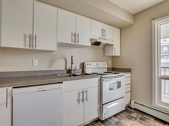 In-suite laundryOpen-concept layoutLarge windowsCozy carpet flooringBright white kitchenCloset pantry
