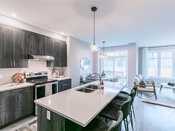 This home is being sold via an unregulated digital auction. Looking for the perfect place to call home for you and your family? This is it, and guess what? It's being auctioned off unreserved! Located in Findlay Creek, this beautiful 3 bedroom + finished basement townhome offers the best of comfort, style, and convenience. The chef's kitchen comes fully loaded with quartz countertops, soft close drawers and cabinets, a built-in wine rack, and an island that opens up to the rest of the living space--making entertaining a breeze. The gorgeous fireplace in the living room provides a warm and welcoming ambiance on those cold winter nights. A finished basement adds extra space for storage or another bedroom if desired. Don't miss out on this property, book a private showing today or stop by one of our open houses! No conveyance of offers before 2 pm on Dec. 1. 48 hr irrevocable.