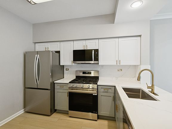 This fully remodeled two-bedroom, one-and-a-half-bathroom condominium at Northlight Passe in Lake in the Hills presents an exceptional opportunity for discerning buyers seeking contemporary comfort and convenience. The property features comprehensive renovations throughout, ensuring modern living standards and immediate move-in readiness. The interior showcases brand new luxury vinyl plank flooring and fresh carpeting, complemented by newly applied paint throughout the residence. The kitchen has been completely transformed with brand new appliances, elegant quartz countertops, and soft-close cabinetry that combines functionality with sophisticated design. These premium finishes create an inviting space for daily living and entertaining. The living room serves as the home's centerpiece, featuring an expansive sliding glass door that creates a striking wall of windows. This architectural element floods the space with natural light while providing seamless integration between indoor and outdoor living areas. The open layout enhances the sense of space and creates an ideal environment for relaxation and social gatherings. The primary bedroom offers practical luxury with dual closets providing ample storage solutions. A strategically placed linen closet serves the dual-entry full bathroom, maximizing convenience for residents and guests. The second-floor laundry room eliminates the inconvenience of carrying laundry to distant locations, adding practical value to daily routines. This townhome-style condominium includes a significant advantage in its full, finished basement, which dramatically expands the usable living space. The basement area provides versatility for recreation, home office space, or additional guest accommodations. An additional storage area ensures that seasonal items and personal belongings have designated space, maintaining the home's organized appearance. Recent mechanical system updates provide peace of mind and energy efficiency. The air conditioning system was installed in 2019, while the furnace was updated in 2017, indicating reliable climate control and reduced maintenance concerns for the immediate future. The community provides the perfect balance of peaceful residential living and urban convenience, making it an ideal choice for first-time buyers, growing families, or professionals seeking a sophisticated living environment. This property represents exceptional value through its combination of modern renovations, practical layout, desirable location, and community amenities. The comprehensive updates eliminate immediate renovation needs while the established neighborhood ensures long-term stability and appreciation potential.