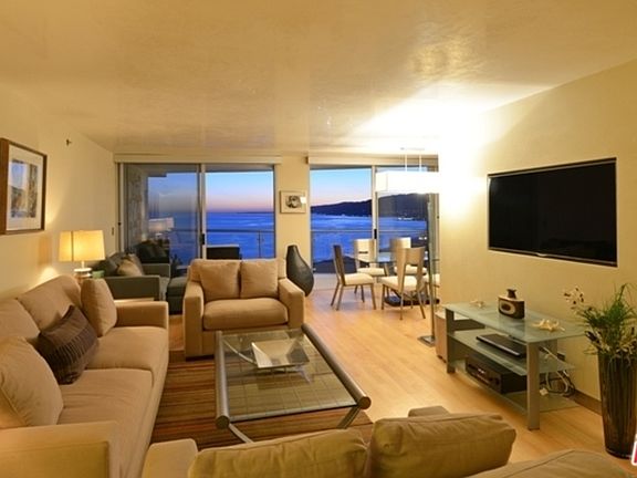 No unit compares to this magnificent remodeled unit. Unobstructed ocean, city & mountain views. Designer perfect unit with no expense spared. Hardwood floors, spa, 3 brand new "75" TVs, surround sound throughout, automatic shades throughout, exquisite lighting system, built in cappuccino machine .Unit comes with towels, dishes, bedding, kitchen utensils and more. A full-service building with 24 hr security, valet parking, pool, gym and spa. Maid service available. Fully furnished.