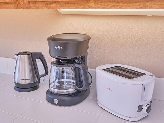 Appliances: Blender, Crockpot, Rice cooker, Waffle maker, Griddle, Toaster, Electric hand mixer.