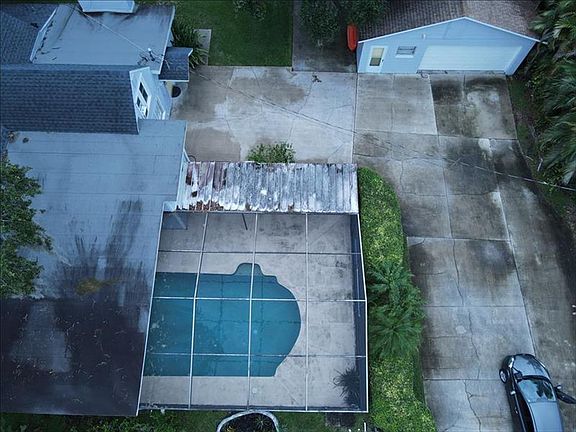 Captivating older home with vintage charm and modern comforts, and no HOA. The main house has 2288 square feet with 3 bedrooms and 2 and a half baths. The guest apartment in the garage has 422 square feet. This is a two-story home with two master suites, one downstairs and one upstairs. From the paved driveway, with space enough for the RV and the boat, enter the family room with wood-burning fireplace to your right. Ahead is the kitchen with Corian counters, lots of cabinet space, all kitchen appliances, and convenient powder room nearby. The kitchen is open to the dining room which has a bay window for a nice view of the side yard. Continue on to the living room with gleaming hardwood flooring and wide sliding doors to the area where you will spend your time. This screened patio with open beam ceiling is nestled under the grandfather oak tree and you will feel relaxed as you unwind from the day here. Go through the screen door to the humongous pool deck with space for all your patio furniture and plants. The sparkling pool is very inviting. Back inside see the first master suite, with brand new carpeting, sliding glass door to the pool deck, and private bath with step-in tiled shower. From the bedroom step through the large closet and on through to the laundry room, leading back out to the family room. Going upstairs, see the wood flooring in bedroom 2, then at the top of the stairs see the second master suite, with view out to E Lake Toho on the north side. This room has a private bath with jetted tub plus a step-in shower. There is a one-car garage with guest quarters, an apartment with living room, bedroom, and full bath. This home, located on a corner lot, is one block away from E Lake, with its walking path, marina and seafood restaurant, beach and playground and splashpad, and year-round events. A short drive brings you to Orlando Int'l Airport, downtown Orlando, the ever-popular theme parks, and all that Central Florida has to offer. Go East and see Cocoa Beach and the Atlantic Ocean, or go West to Tampa/St. Pete and the Gulf of Mexico. You will love living here, close to everything, but away from the crowds.