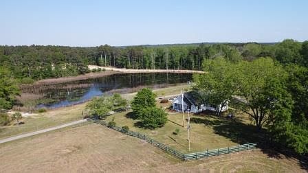 FARM LIFE Calling Your Name??? Bring your FISHING POLE and enjoy this 1950's Farm House on 39.75 scenic acres that overlooks a 6 acre fishing pond, a 2 acre upper pond & 8 acres of rolling pasture for your livestock. Exterior features a concrete patio, tractor shed, hay barn, bottom land for duck hunting & deer hunting, recent pond damn upgrades and lots of entertaining space. The 40X60 metal building has 4 horse stalls & tack room in the rear and the front half is a entertainment room with kitchen, half bath, open space for family gatherings and a 20x30 covered porch for outside entertaining in the shade. The house has been updated over the years with vinyl windows, hardwood floors, gas range, tile countertops, tile backsplash, tile floors in bathrooms, a living room overlooking the pastures, a great room that could be a home office, deck for grilling and a front porch for rocking chairs. This country estate is an outdoor lovers dream!
