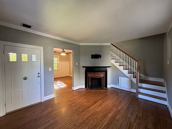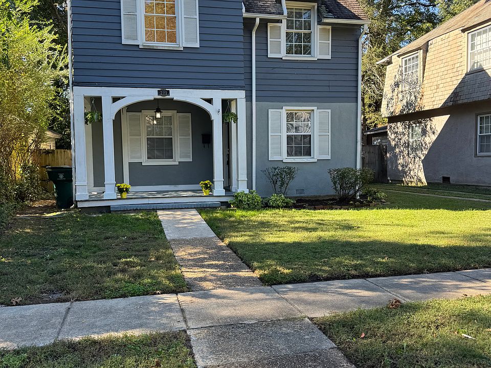 Welcome to 201 Piez Ave in Historic Hilton Village! This charming 3 bedroom home welcomes you with the wide front porch and the inviting front door with original doorbell. Enter into the freshly painted living room has tall ceilings, beautiful fireplace, and open floor plan flowing to the dining room and kitchen. The kitchen has been updated including stainless steel appliances and solid surface counters. All 3 bedrooms are situated on the second floor with original wood floors. The primary bedroom has been freshly painted and offers plenty of closet storage. The large bathroom has recently been updated. Enjoy a dinner party with friends on the back deck and brick patio in the fully fenced private backyard with an detached garage with electricity. Sought after Hilton Elementary school district. Easy access to shipyard, military bases, historic areas, I-64, Warwick Blvd, Jefferson Ave, and the James River. Pets are negotiable and available now.