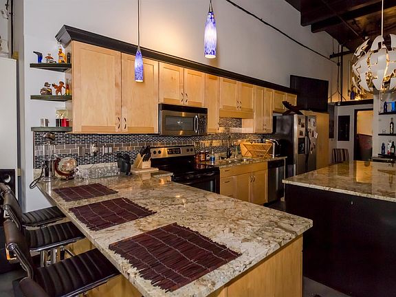 Great location/even better interior. You won't believe all the upgrades the seller has done! The epoxy floor is a real stunner. The new huge island in the kitchen is superb with a new granite top! The pendent lights throughout the loft can be dimmed just by pulling on the cord-instant ambiance! Check out the Big Air fan! The tile backsplash design is unique, along with the tile work in the bathroom. Attention to detail-did you notice the metal ladder that's been installed in the bedroom for easy access to the mechanical room. The security and camera system stay, the Murphy bed stays and the entertainment shelving system. This is a Smart Home-control HVAC from phone,activity on patio, etc. 1 hr w/systems man inc. in price of home.The pool table, shuffle board,hot tub and foosball are available for sale. Ask for pricing on these items. One covered parking space and large storage unit. Workout room-you bet! This IS a must see home!