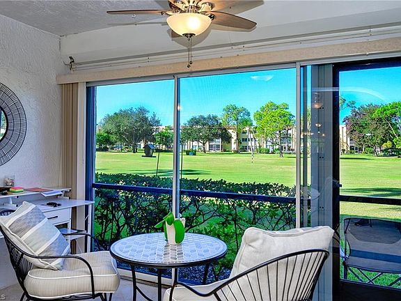 Great location to go to beach, go shopping and go to dinner. Like a new condo with everything on the newer side. First floor with wide view of golf course. Join the Quail Run Golf Course with reasonable fees if you wish. BEING SOLD TURNKEY. Extra storage closet in separate area. Bicycle rack outside. Kitchen with stainless steel appliances, granite counters, porcelain tile throughout. Crown molding in living room, dining room, both bedrooms. Granite counters in kitchen and baths. Sunroom has screens and glass sliding doors. Also, storm shutters. DON"T MISS THIS BEAUTY !!! WON"T LAST LONG.