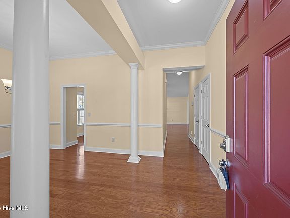 Welcome to this well maintained ranch-style home nestled in the sought-after Lynnwood Highlands community! Situated on a spacious .24 acre corner lot, this property boasts a fenced backyard, perfect for outdoor gatherings and activities. Upon arrival, you'll be greeted by a welcoming ''rocking chair'' covered front porch! As you step into the foyer, your attention is immediately drawn to the elegant column features that delineate the formal dining area, illuminated by a triple window that floods the space with natural light. Home had fresh interior paint in 2024. The heart of the home is the expansive open family room, characterized by cathedral ceilings and a two-sided fireplace with gas logs. This fireplace is shared with a separate den/sitting area, offering flexible usage options, and convenient access to the deck area, ideal for seamless indoor-outdoor entertaining. The spacious kitchen is equipped with abundant white cabinetry, ample countertop space adorned with granite, and a breakfast bar with an overhang for additional seating. Built In microwave, electric range and dishwasher replaced in 2024. Refrigerator conveys and was replaced in 2025. A pantry provides extra storage. Retreat to the primary bedroom suite, complete with his and hers separate walk-in closets, and a large private bath featuring double vanities, a jetted spa tub, and a step-in shower. Two additional generous-sized bedrooms offer versatile usage options, complemented by a full hall bath with dual entries for convenience. The Laundry room is conveniently located for easy access. Upstairs, you'll find a finished bonus room with a closet, perfect for use as a guest bedroom, private home office, or hobby room. New Gas Pack HVAC in 2025. Natural gas connected. Residents of Lynnwood Highlands enjoy access to community pool. The community is conveniently located just a short drive away from MCAS Cherry Point, as well as local shopping, restaurants and downtown New Bern.