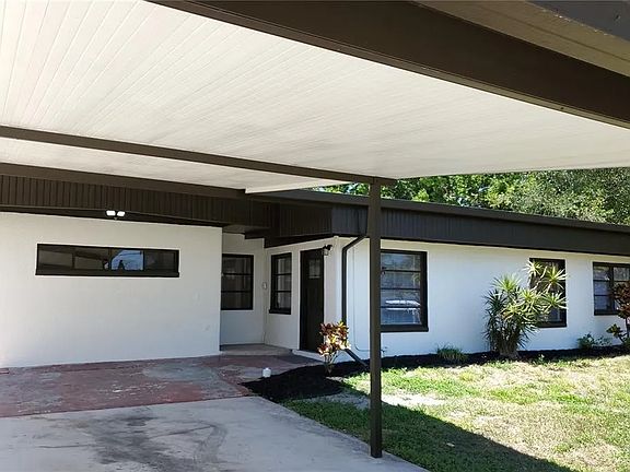 Tastefully and completely renovated Single Family Home with split 2 bedroom, 2 bath floor plan. New LVP floors throughout. All new doors. New water heater tank. Brand new kitchen with quartz counter tops, backsplash, single basin kitchen sink with garbage disposal. Both bathrooms offer new vanities, toilets, floor tile work and walk-in shower tile mastery and all new lighting and fixtures. Walk-in-closets in both bedrooms. Very spacious laundry room. Double wide and almost 70 feet long driveway with oversized carport that can easily fit two cars. Two sheds in the backyard which provides extra storage. Short drive to beautiful beaches!