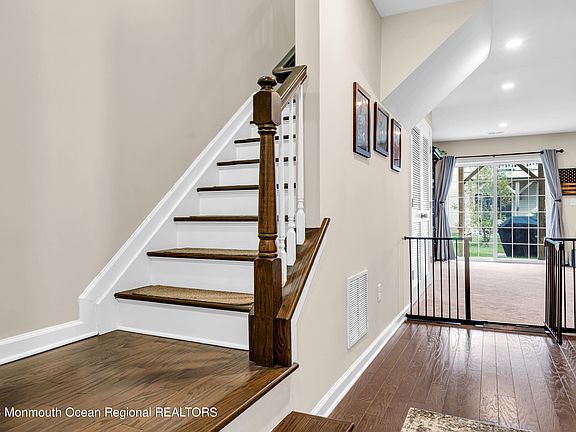 Townhome Opportunity Knocks! Highly sought END UNIT in Brick's hottest new developments - New Visions. Built in 2021, this upgraded 3 Bedroom, 2 Full, 2 Half Bath Unit features hardwood flooring, First Floor Family room w/ Half Bath, and sliding door to Patio, Second Level features Open Floor Plan w/ Living Room w/ Gas Fireplace, another Half Bath, Center Island Kitchen w/ Granite counters, Breakfast Bar, and Dining / Eat In area w/ sliders to private Deck, Third level features Three Generous sized bedrooms including Master Bedroom suite w/ walk in Closet, plus 3rd Floor Laundry and One Car garage makes this the perfect Brick townhome for you, the next Owner