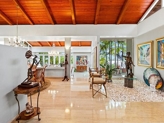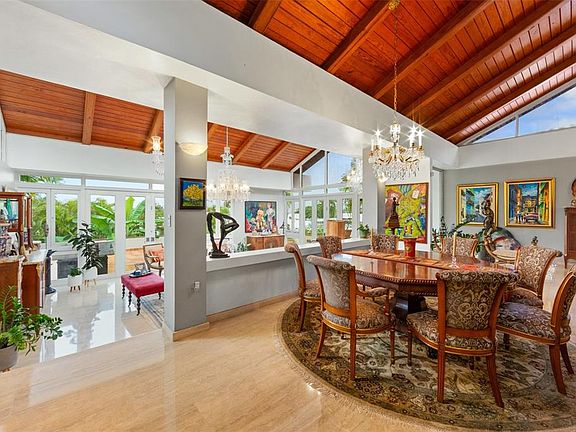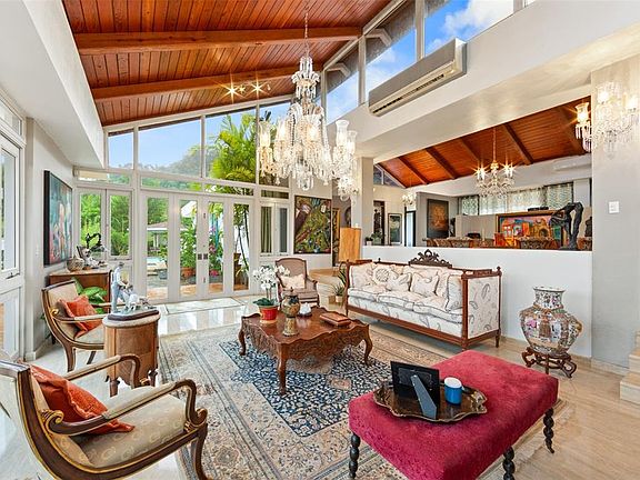 Located in the renowned La Villa de Torrimar community in Guaynabo, this distinctive residence blends architectural elegance with artistic soul. Flooded with natural light, its open layout features vaulted wood ceilings, marble floors, and crystal chandeliers that highlight an exquisite collection of art and design. The home offers four bedrooms and two and a half bathrooms, along with spacious living, dining, and family areas — perfect for both everyday living and entertaining. Large windows and glass doors seamlessly connect the interior to an expansive terrace surrounded by lush gardens. The outdoor area includes a pool, jacuzzi, and gazebo, creating a serene, resort-like atmosphere. Set on approximately 960 square meters within a gated community with 24/7 security, this residence embodies a rare balance of sophistication, warmth, and creative energy.
