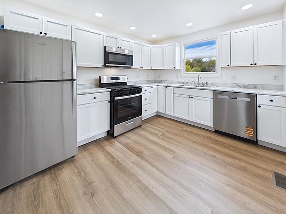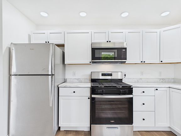 Laundry areaCozy carpetingFreshly updated bathPeaceful settingElegant low-maintenance flooringBrand-new kitchenSleek white shaker cabinets