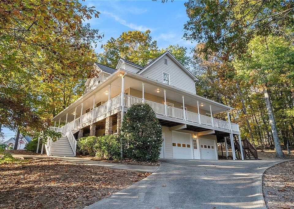 This is THE ONE! Step onto the true wrap-around rocking chair porch and instantly feel at home in this immaculate 4-bedroom (Master on Main), 2.5-bath Southern charmer! Inside, you’ll be welcomed by the warmth of gleaming ¾-inch hardwood floors and 9-foot ceilings that set the tone for elegant yet relaxed living. There’s no carpet anywhere—just beautiful hardwoods throughout every living area in the home. When your guests arrive for holidays and special occasions, they’ll be greeted by the cozy fireplace in the expansive living room, where floor-to-ceiling windows flood the space with natural light. This inviting gathering area flows effortlessly into the light-filled dining room, which overlooks the private wooded backyard and the expansive, full-width deck—perfect for entertaining or quiet evenings surrounded by nature. Overhead skylights add even more warmth and brightness to this gathering space. The all-white eat-in kitchen continues the open flow, creating a cheerful and functional space for family meals and conversations. The spacious Master on Main is a true retreat, featuring the same gorgeous hardwoods, a tray ceiling, abundant natural light, His & Hers closets, a spacious ensuite bath, and direct access to the wrap-around porch—ideal for morning coffee or evening relaxation. Upstairs, you’ll find three generous secondary bedrooms, each with beautiful hardwood floors and plenty of natural light. The bright full bath offers a separate tub and shower, and the bedroom to the left of the stairs features a vaulted ceiling and a true walk-in closet—a perfect space for guests or college-aged family members. And don’t miss the ultimate “guy’s dream” basement! Thoughtfully designed for flexibility and function, this unfinished space offers endless possibilities—perfect for a home gym, media room, workshop, or additional living space. The spacious 3-car garage with 9-foot ceilings, sprinkler system, and even room for your boat completes this functional and versatile setup. Nestled amid beautiful hardwood trees on nearly an acre (0.93 acres), this home is a peaceful private oasis that feels worlds away yet remains just a short drive to several Lake Allatoona marinas and boat ramps. Come see for yourself—this stunning home won’t stay hidden for long! Make your appointment today and discover the charm, warmth, and serenity of this one-of-a-kind property.