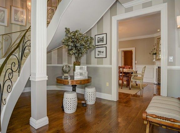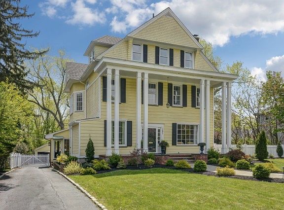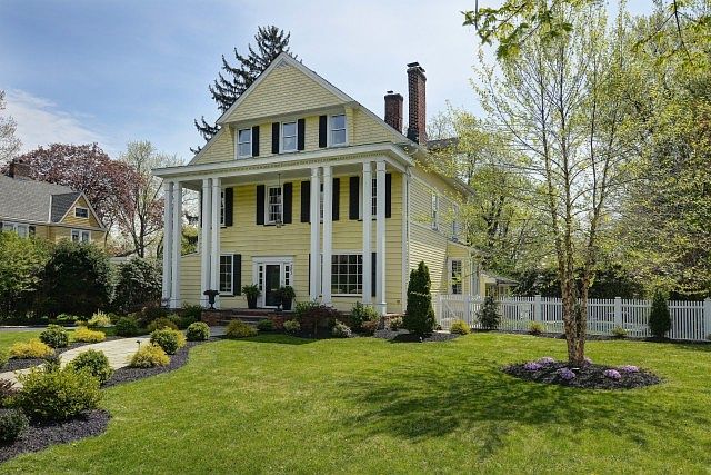 Gracious Georgian Colonial located on prestigious Ridgewood Avenue. Impressive entry foyer leads to expansive living room and formal dining room. The FR includes vaulted ceilings & is sunlit by lg