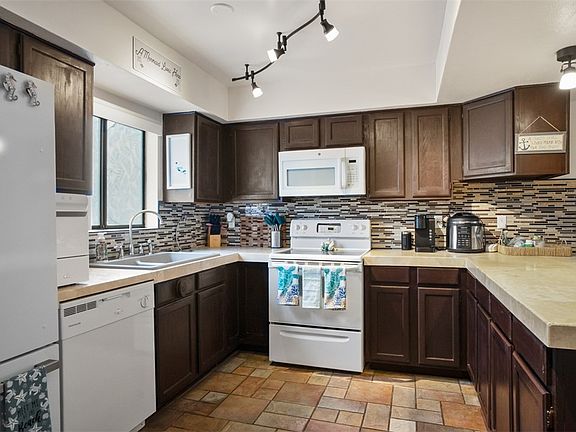 Discover the charm of Riverfront living in this beautifully updated two-story condo that offers the rare convenience of direct level entry access. This spacious 2 bedroom, 2 bath unit blends comfort, style and functionality with thoughtful upgrades throughout. The main level features an inviting room and a remodeled kitchen showcasing tile countertops, a sleek new backsplash, and cohesive tile flooring that runs throughout the entire level. A full bathroom on this floor adds everyday convenience. Laminate-finished stairs lead to the upper level, where you'll find both generously sized bathrooms and a fully remodeled bathroom highlighted by a stunning, fully tiled walk-in shower. Perfectly positioned near the water's edge this condo combines modern updates with a serene riverfront setting - ideal for full-time living or a relaxing retreat. Also includes a 1 car garage. The complex is gated has a pool and spa, doc and a clubhouse!