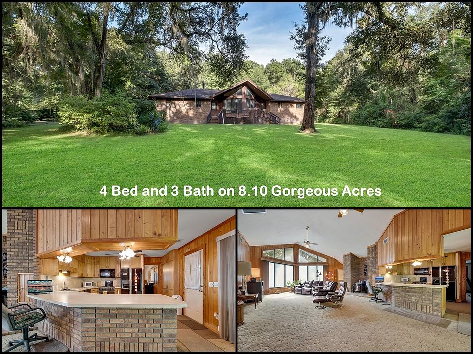 Single family ranch style home situated on 8 Acres! This all brick home was built in 1985 and has 4 large and spacious bedrooms, 3 baths, a family room, with brick fireplace, vaulted ceilings, and exposed beams. This home has over 3500 sq ft under roof with over 1800 sq ft heated/cooled. 2 car garage, covered porch, fenced area for animals and gardening. Detached RV enclosures with concrete slab and role up doors with separate 1500+ square foot workshop that could easly be converted into a apartment. Property is located 15 miles from Capital Circle and 5 minutes from I-10 for easy commute.