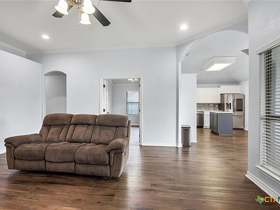 Beautiful 4 bed 2 bath home nestled in a peaceful cul-de-sac on an oversized lot in the popular Splawn Ranch neighborhood of Killeen. This home is just a short distance to schools, restaurants, and any needed conveniences. The open concept design seamlessly connects the living, kitchen, and dining areas creating the perfect cozy and inviting space for gathering. The new well thought out kitchen showcases gorgeous quartz countertops, center island, and nice stainless steel smart appliances. This home also features a separate office/formal dining/flex space, tall ceilings, wood burning fireplace, new paint and beautiful luxury vinyl plank flooring, with carpet in bedrooms only. The oversized primary suite features tray ceiling with recessed lighting, nice large master bath with jetted tub, walk in shower, and large his and her closet space. The highlight of the home is the expansive, fully fenced backyard. Its the perfect safe and private space for children and pets to play freely as well as plenty of space for a future pool, gardening or entertaining. The covered patio offers a delightful spot for outdoor dining, barbecues and relaxation, In summary this home has so much to offer and is ready to move right in and make it your home.