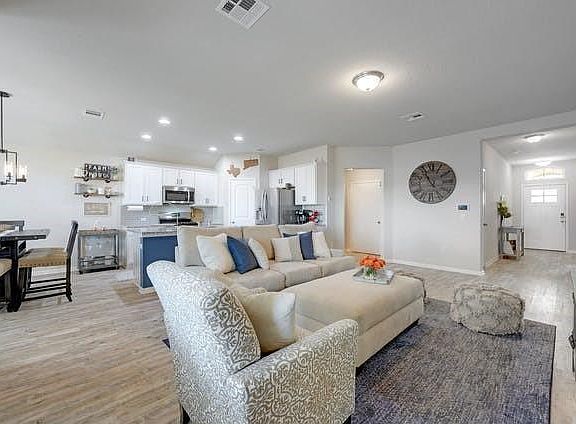 Charming single-story home in sought after Larkspur, laminate floors in living room, kitchen, and halls, carpeted bedrooms. Kitchen is open to living room with BIG island, granite countertops, and stainless steel appliances. Primary suite includes dual vanity, large shower, and roomy walk-in closet. The custom deck on the back of the home is under the large live oak tree and faces green space with a hilltop view. Home is close to US 183 and a metro rail station for a quick commute to downtown Austin. Walking distance to elementary school, neighborhood pool and fitness center.