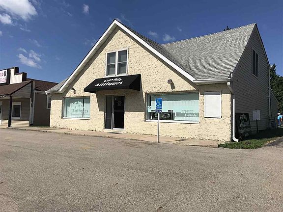 Retail space for sale in Dunlap Illinois. This space includes retail, an apartment and garage space. The retail space is currently rented by David's Antiques at $900 per month. The 3 bedroom apartment on the upper level rents for $600 per month. Garage space in back rents for $240 per month. Total current rent per month is $1740. New roof and central air within last 3 years.