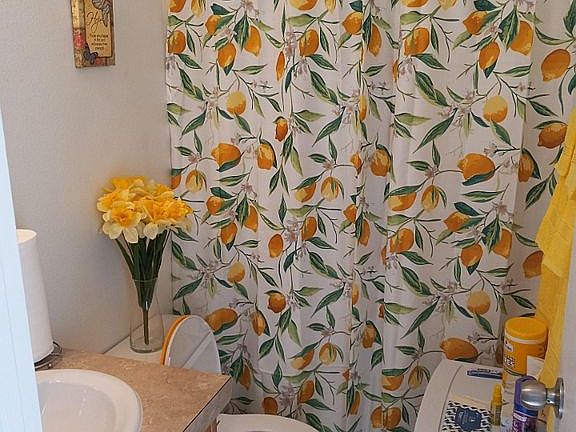 It is a single wide home on a double wide property. Therefore it is a very large backyard whereas you can add on a deck and a ramp if necessary. Great for snowbirds, I'm selling at this great price $35,000.00 as is, so I can move out of state.