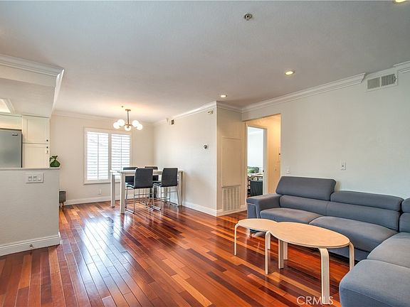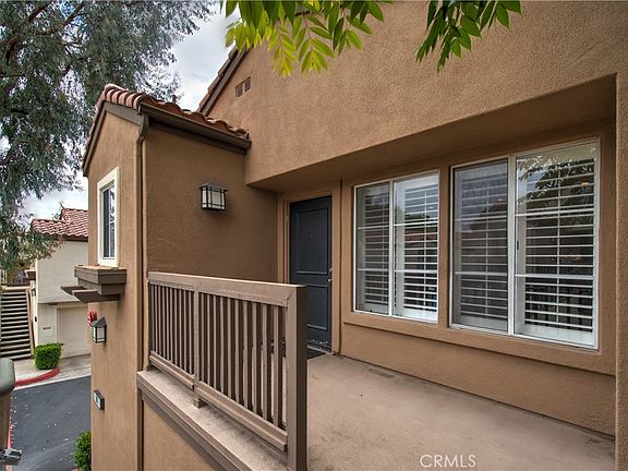 This bright, open, upper-level condo with no one above or below is located in the sought-after community known as Canyon Hills in Orange and is move-in ready. A newly remodeled kitchen, Beautiful Brazilian cherry wood floors, crown molding, upgraded baseboards, recessed lighting, and wood plantation shutters complement the bright and open floor plan. The master bedroom features a walk-in closet, a private balcony, remodeled bathroom with a spa-inspired shower, and a custom vanity with a granite countertop. The secondary bedroom is generously sized with mirrored closet doors with custom built-in storage. Additional features include a spacious front balcony with a peek-a-boo view of the canyons. The single-car garage is located directly under the unit which is not common in this particular community and definitely a bonus! Enjoy all the resort-like amenities this community has to offer; two swimming pools, two spas, a fitness center and a clubhouse. Water/sewer/trash is paid through HOA. Walk to Peter's Canyon Regional Park to enjoy all the hiking/biking trails.