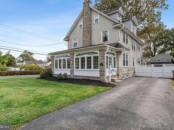 Incredible Opportunity in the Heart of Springfield Township! This absolutely stunning 6 Bedroom Colonial, might just be the most unique listing in the entire township. Nestled on one of the prettiest streets Springfield has to offer, within walking distance to everything—this home blends pure old-school charm with modern updates and style throughout. First Floor: Walk up the front walkway, step under the covered entryway, which welcomes you with hardwood flooring throughout. The center hall colonial design captivates you immediately. To the right, black 18-panel French doors lead to a formal living room featuring a wood-burning stone fireplace. Two additional sets of French doors open into an enclosed side porch that’s absolutely stunning, with continued hardwood flooring, recessed lighting, and a cherry wood tongue-and-groove ceiling. The natural light in this room is simply breathtaking. To the left of the center hall, you’ll find a perfectly laid-out formal dining room with abundant light and a bow window. Off the dining room is the kitchen, which opens into a sensational eat-in breakfast nook offering incredible views of the property. This area also includes a powder room and additional laundry space. The hardwood floors and neutral tones continue throughout, tying everything together seamlessly. Second Floor: The hardwood flooring continues throughout the second level, where you’ll find four perfectly sized bedrooms. Each room features neutral tones, recessed lighting, and crown molding. One bedroom includes custom built-ins, adding both charm and functionality, or the perfect home office set up. An updated hall bathroom completes this floor. Third Floor: The third floor offers two additional bedrooms, including the primary suite with full bathroom. This space also has the potential to be converted to one oversized primary suit which could be unbelievable! Basement: The basement is currently unfinished but offers fantastic potential. It’s in excellent condition and features walkout access via Bilco doors. Perfect for storage now or finishing later. Exterior: This beautiful corner lot is fenced in with a classic white picket fence. A large EP Henry paver patio provides the perfect private outdoor escape. With a spacious side yard and flat lot, it’s an absolute dream for entertaining, playing, or relaxing. Additional Upgrades Include: Fresh paint throughout the home (2024) New porch hardwood (2024) New refrigerator and washer (2024) New hot water heater (2018) Upgraded to 200-amp electric (2012) EP Henry stone pavers installed White picket fencing Local Vibes: Just a short walk to Saxer Avenue, Springfield High School, or St. Francis Church. Minutes from Baltimore Pike, Route 420, I-476, I-95, and PHL Airport. Walk to all the local hot spots, Dom and Mia's, Saxers, Dairy Cottage and more. The location is unbeatable—tucked into a stunning neighborhood with walkability, charm, and convenience all in one.