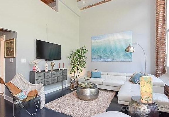 Loft-style condo located inside the historic Hoskins Mill. Open floor plan with a rustic/vintage/modern feel all rolled into one. First floor unit featuring brick, exposed wood beams, and beautiful 12ft arched windows providing ample amounts of natural light. The second level is a sprawling open loft that makes for an ideal primary bedroom with attached closet. Professionally cleaned and fresh paint. Ideal to owner occupy or rent as the unit is turnkey. Ideally located only minutes to Uptown, I-77 / I-277 / I-85, and the CLT Airport. Property qualifies for a Historic tax credit. PLEASE SEE AGENT REMARKS. PLEASE REVIEW ACCESS NOTES IN SHOWINGTIME TO AVOID ISSUES WITH ENTERING THE BUILDING & UNIT. Photos taken when unit was furnished. The unit is now currently vacant with no furniture inside.
