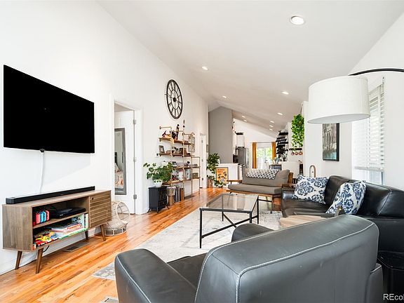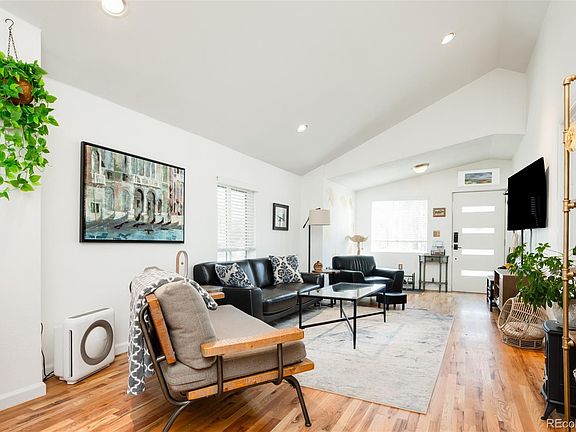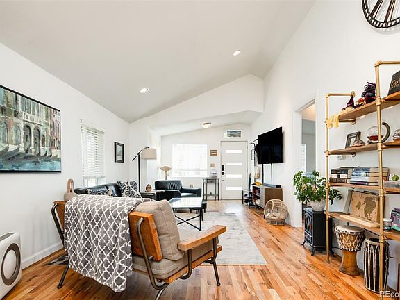 An entirely reimagined home in Southwest Denver’s Barnum Neighborhood. Situated on a spacious corner lot, vaulted ceilings crown the home’s interior as uninterrupted natural light traverses its seamless flow from the living and dining areas into a galley-style kitchen adorned with open-shelves, dazzling crisp white cabinetry and sleek stainless-steel appliances. A secluded home office bookends the home with an adjacent full-bath and laundry, as well as a sliding-glass door that opens onto the fenced-in backyard. The primary bedroom is thoughtfully located just off the living room, and a secondary bedroom for family or guests is near the dining room. Additional living space continues in the finished basement where there is an extra living room and a convenient ½-bath and storage. This space could also make a primary suite boasting an egress window and closet. The backyard is an outdoor urban retreat with a manicured lawn, storage shed, raised garden beds and fruit-bearing trees. Close proximity to the neighborhood’s scenic Weir Gulch Park and Weir Gulch Trail, perfect for outdoor enthusiasts; and to Lakewood’s Belmar Shopping District for dining, retail and entertainment. Buyer to assume solar loan at closing.