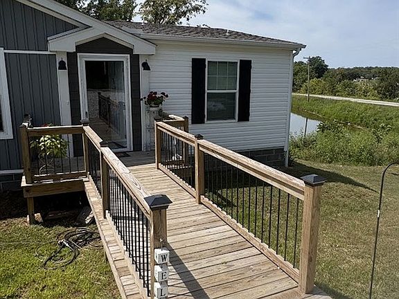 Enjoy panoramic water views and fabulous sunsets from this newer ranch home on Holiday Acres Lake, with direct frontage on one lake and vistas of both. Designed for easy one-level living, it offers 3 bedrooms, 2 baths, an open-concept living, dining, and kitchen with spacious eat-at island, plus a spacious utility room with additional pantry storage. Relax on the large wood deck, stroll the sidewalk to the garden/lake shed, or gather on the concrete patio by the sandy beach. Ample parking with garage or carport options make this an ideal year-round home or lakeside retreat. Call or text Sonja at 660-65-4107 to see inside or 660-385-7297.