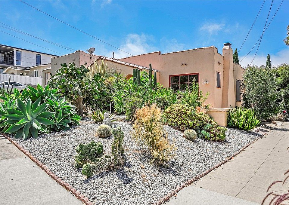 The home sits on a 3,072 square foot lot, offering an outdoor space for lounging in the California sunshine, and an impressive drought-tolerant cacti front yard, perfect for gardening. The interior is bathed in natural light, highlighting the timeless architectural details that make this home truly unique.