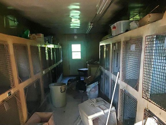 This is an excellent lot with a unique structure on it. It was built for small animals- like a vet clinic or animal shelter would have. There are 18 professional quality runs- half inside, half outside with the outside covered. All over concrete for easy cleaning. There is an office area, as well as sink, toilet, water hydrant.This nice level, accessible would be an excellent spot for storage units, etc.