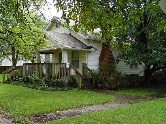Look at this nice, shaded, corner lot with a detached garage. There are raised gardens on the back the property. The home has larger rooms and a basement. The basement has flooded when the power was off. It can be repaired for a great usable space. There are stairs off of the kitchen and the living room for easy access. Original wood floors in many of the rooms.This one has so much potential. You will want to see it. Home will be sold as is condition.