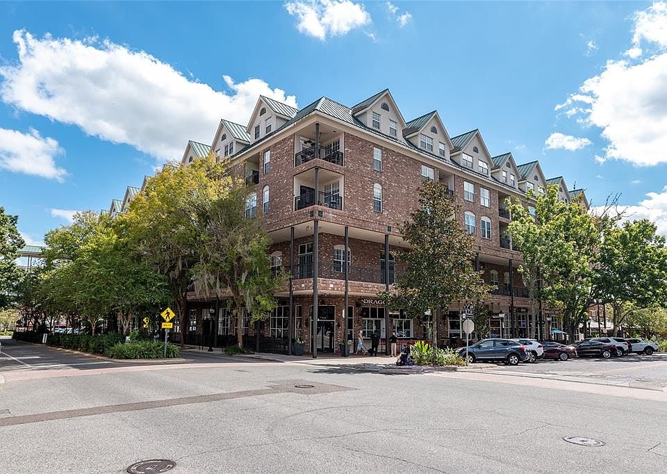 RARE 3rd floor 1 bed/1 bath condo in the heart of Downtown Gainesville, ideal for walkable living! Located just steps from dining, coffee shops, local events, and The Hippodrome Theatre. This well-maintained condo features parquet wood flooring and tile throughout (no carpet), solid surface countertops, a tile backsplash, and an elevated breakfast bar that opens to the living area. The bedroom is spacious and includes a walk-in closet, and French doors lead to a private balcony perfect for enjoying fresh air and downtown views. Furniture is negotiable, offering a potential turnkey option for buyers. Situated in the highly desirable Union Street Station community, which offers secured building access, interior courtyard, covered parking in the attached garage, and high-speed internet included in the HOA dues. Less than 1.5 miles to the University of Florida and also convenient to the Innovation District, UF Health Shands Hospital, and downtown amenities!