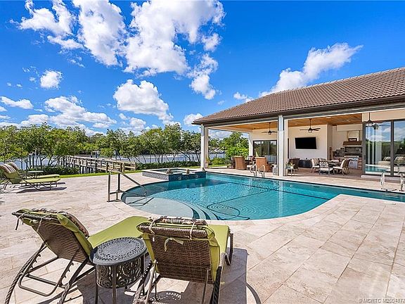 Discover true luxurу іn thіs stunning Αrthur Rutenbеrg Estate home, built іn 2014 with еvery detail thoughtfully designed. Featuring 6 bedrooms, 7 baths, over 6,000sq ft of air-conditioned living space, this residence seamlessly blends elegance and comfort. A separate off the pool deck-currently a gym-offers endless possibilities as a studio, in-law suite, or game room. The outdoor oasis includes an oversized pool and spa, a pavilion-style patio, and a fully equipped summer kitchen, perfect for entertaining. Enjoy tranquil views of the St. Lucie River's North Fork and a beautifully landscaped yard. The updated dock is suitable for a large yacht. Inside, formal and casual living areas surround a magnificent kitchen, while a home theater and an expansive master closet elevate the lifestyle. New 2025 Roof!