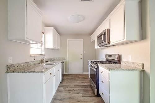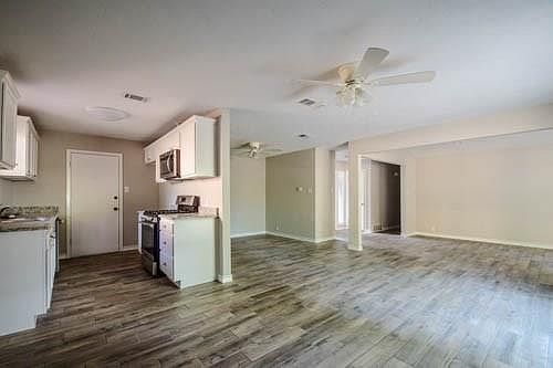 Completely remodeled inside and out, 3 bedroom, 2 bath house. Open concept living area open to dining and kitchen. Granite in baths and kitchen, new kitchen cabinets, new fixtures throughout. Ceramic in all areas other than bedrooms. New privacy fence. Patio all on a corner lot.