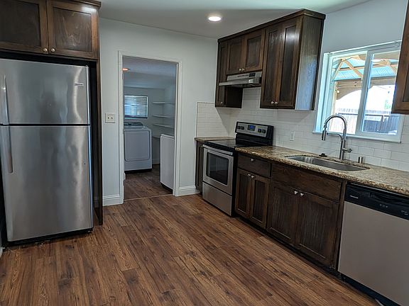 Cute home to rent. The front yard had low maintenance yard. Rent includes washer, dryer, and stainless refrigerator and high speed internet. The backyard is spacious for relaxing and hanging out.