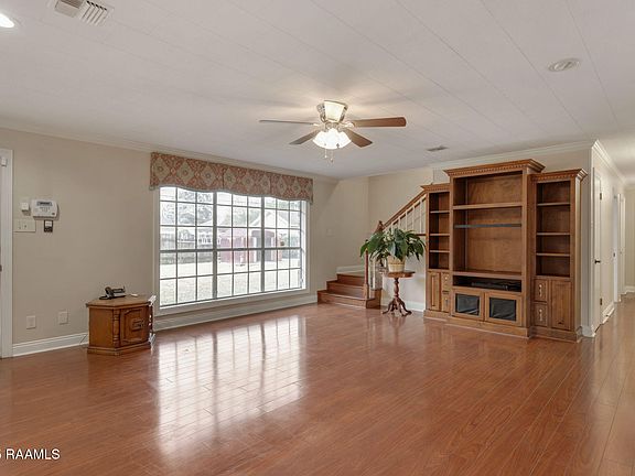 Welcome to this wonderful home in a highly desirable area one mile from River Ranch, off East Bayou Pkwy.! Priced below appraisal, this traditional two-story home has tons of storage and special features throughout with roof replaced in 2023. The beautiful beveled front door leads to the formal dining room and den with custom built entertainment center perfect for large gatherings of family and friends. The updated kitchen features a glass tile back splash, quartz countertops and ceramic tile floors with a cozy snack bar and breakfast room. The freshly painted half-bath by the laundry room conveniently opens outside to the garage for outdoor entertaining. The downstairs primary bedroom features a huge walk-in closet with built-in drawers plus ensuite with quartz counters, double vanity and gorgeous designer tile walk-in shower. The dedicated office (or second bedroom) downstairs features custom cabinets and shelving with a walk-in closet and separate sewing or hobby room. The three roomy bedrooms upstairs have new paint and new carpet in light neutral colors! Double built-in desks and double closets are features in two upstairs bedrooms. The full bathroom is bright and spacious with a double vanity and enclosed toilet and tub perfectly designed for the kids to share. The backyard has plenty of room for a pool and outdoor kitchen! Check out the oversized storage room in the garage plus outdoor shed for added storage. This meticulously maintained, one-owner home in a quiet, established neighborhood can be yours! They don't build them like this anymore! Sellers are motivated so schedule your showing today!