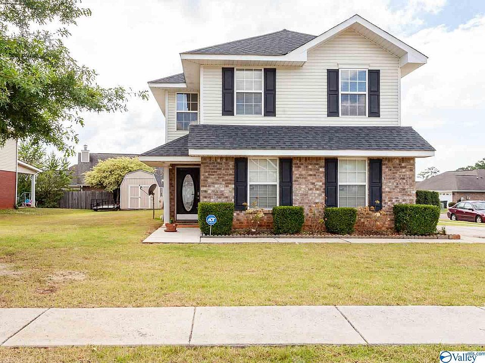 Looking for a lot of space at a great value? This 4BR/3BA home + bonus & sunroom, is nestled on a corner lot, and convenient to 565 & Gate 7. Family room is spacious w/ cozy fireplace & leads to sunroom. Kitchen offers plenty of cabinet and counter space & offers large breakfast room overlooking backyard. Master suite is large w/ walk in closet and en suite bath. Sunroom is a great place to relax and enjoy views into backyard. Storage shed remains.