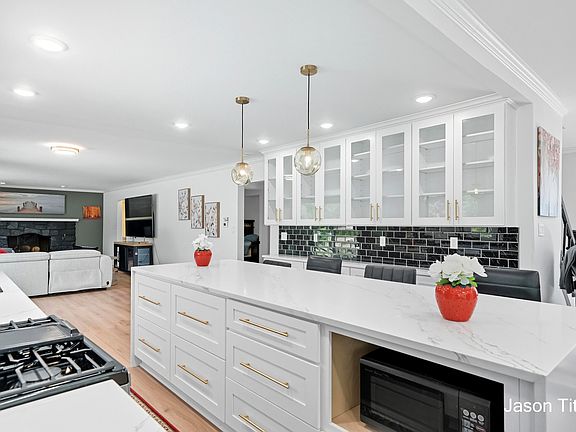 Huge islandMarble tileBuilt-in oven and rangeOpen floor planJaw-dropping waterfall counter designRecently painted exteriorNew roof